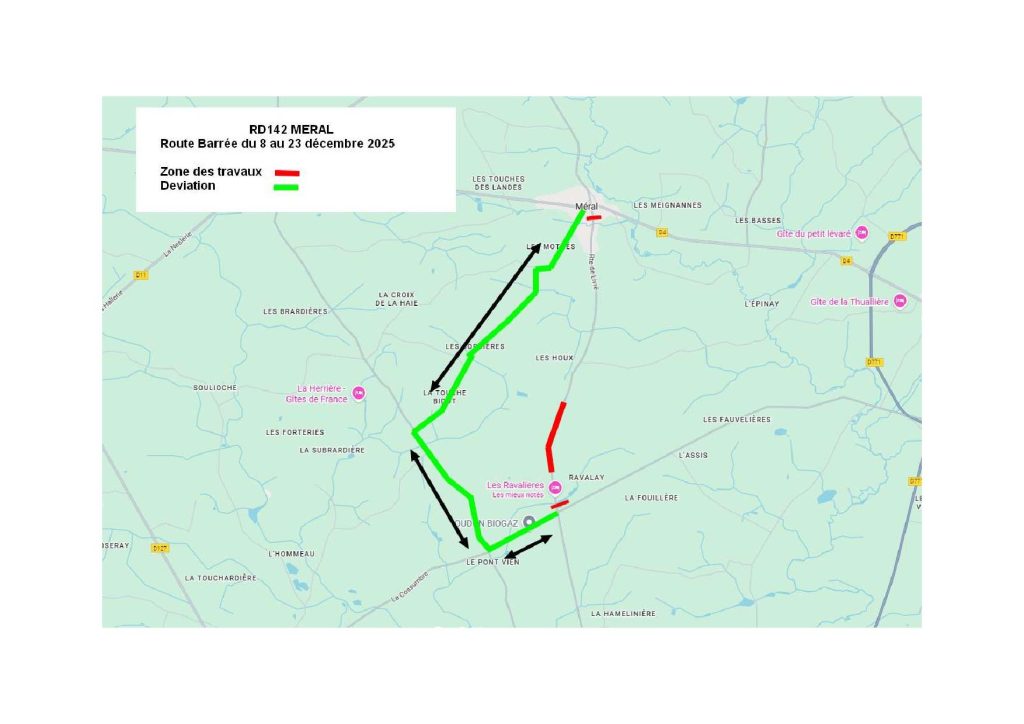 Des travaux de voirie auront lieu du 8 au 23 décembre au niveau de la RD 142.