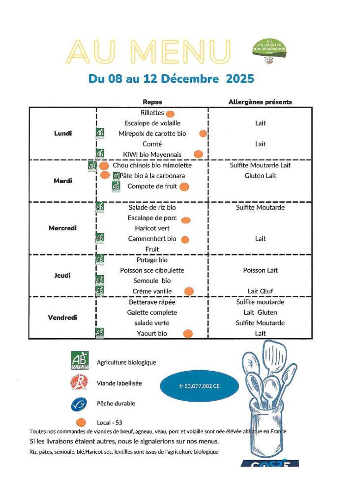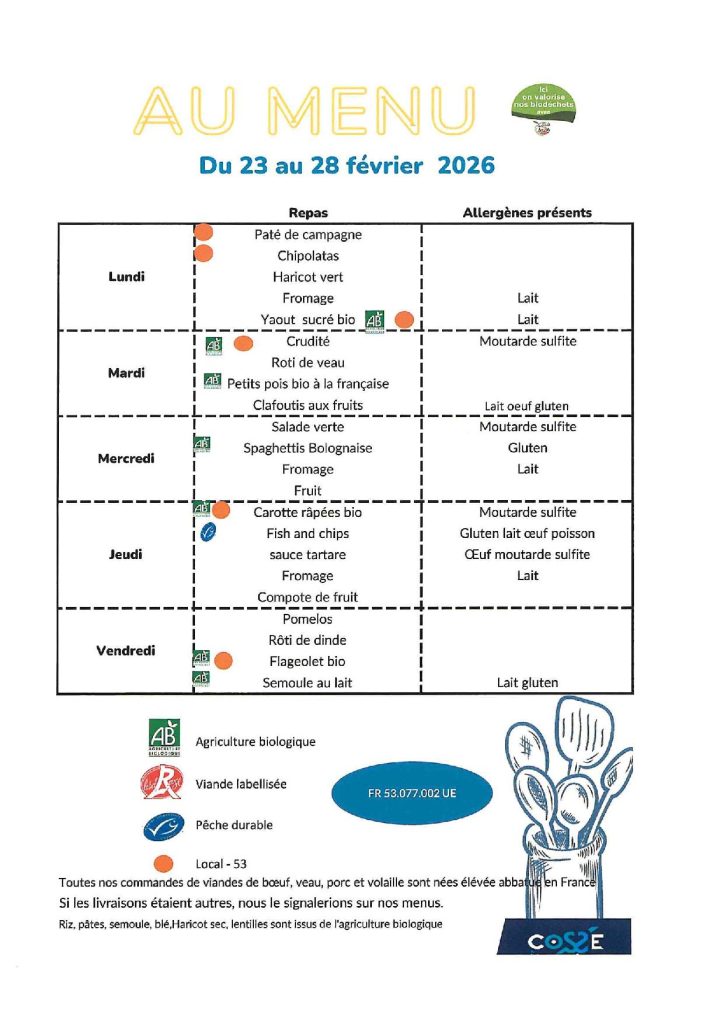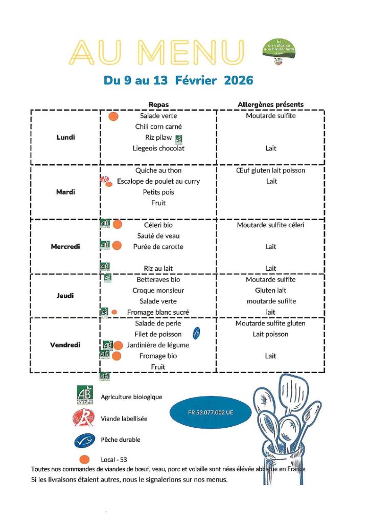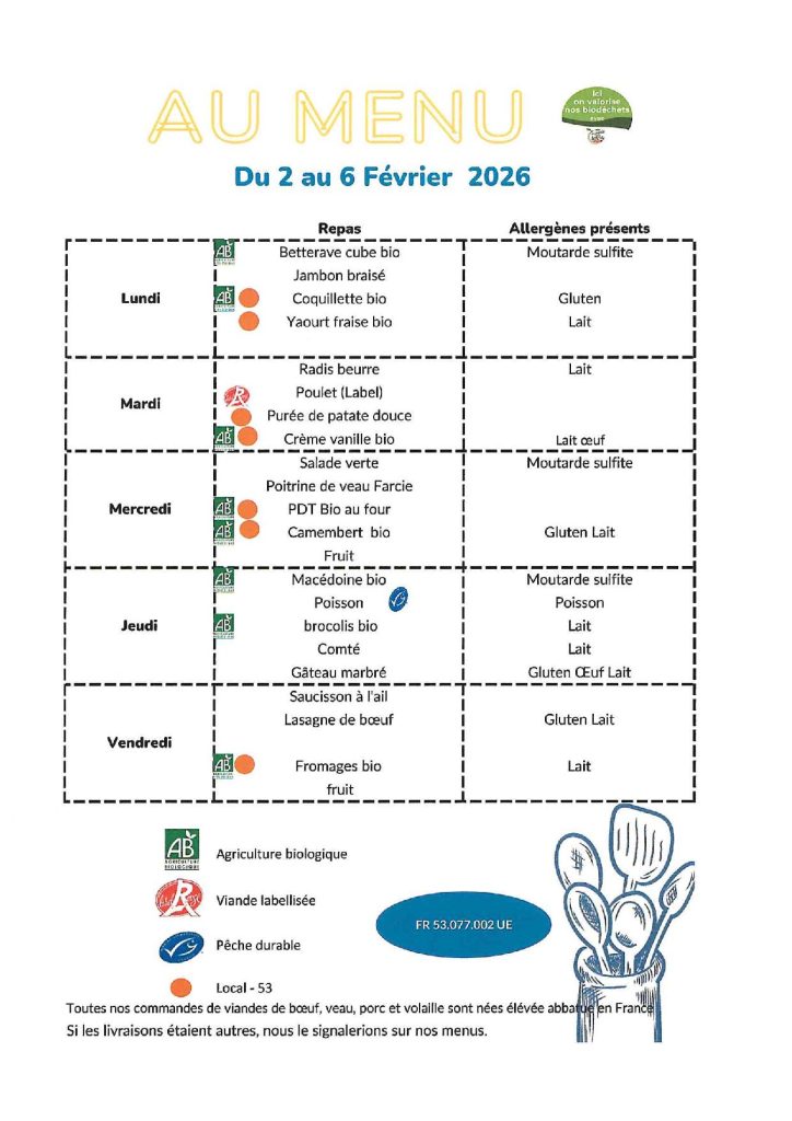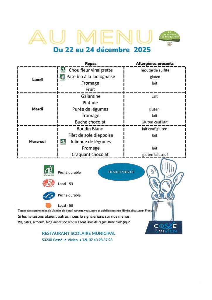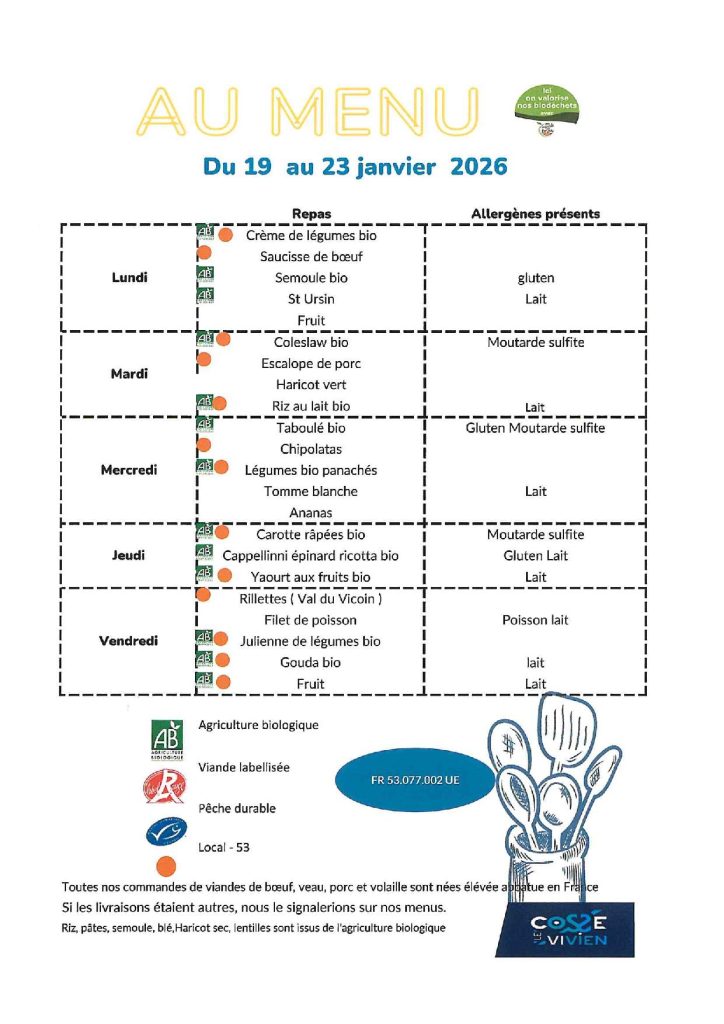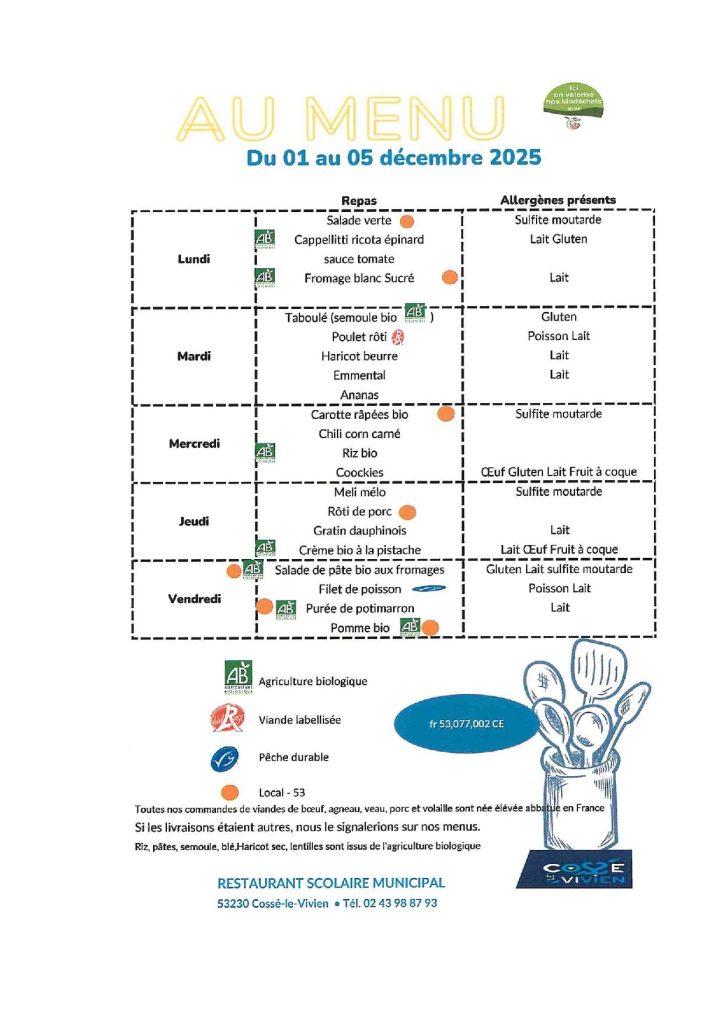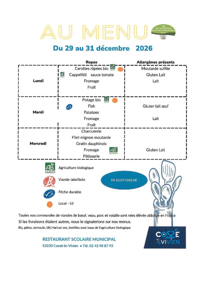 - De connaître le nombre d’enfants qui vont manger à la cantine et de commander le nombre de repas nécessaire auprès de la cuisine centrale de Cossé Le Vivien.
